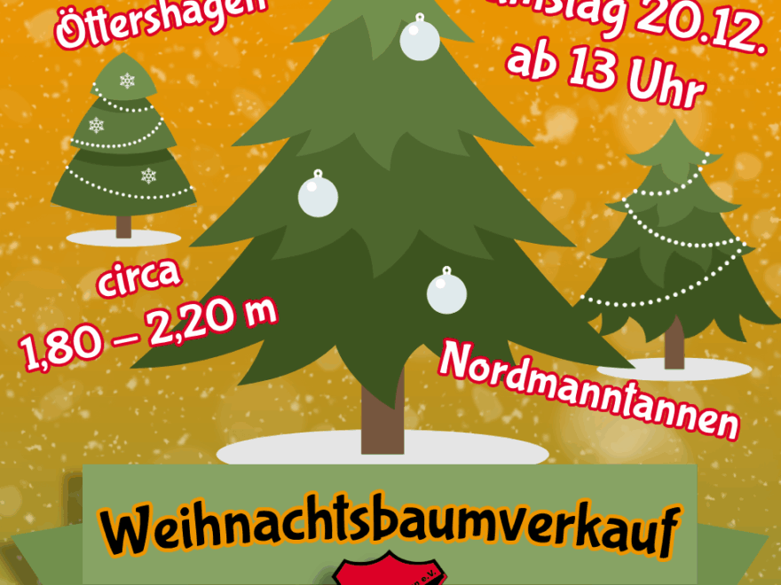 Der SV Öttershagen lädt Euch auch dieses Jahr herzlich zu unserem Weihnachtsbaumverkauf ein! 🌟 Freut Euch auf frische Nordmanntannen in der Größe ca. 1,80–2,20 m und eine gemütliche, vorweihnachtliche Atmosphäre mit stimmungsvoller Musik. 🎶🎅 📅 Wann? Samstag, 20.12. ab 13:00